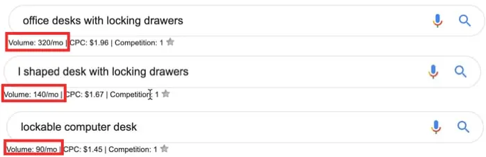Come puoi vedere, ci sono già un paio di idee nell'autosuggest. Premi invio e vedrai anche che la stessa "sicurezza dell'ufficio" ha un volume di ricerca, quindi questa potrebbe essere una nicchia praticabile.