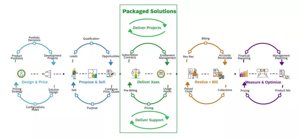 - Funzionalità di processo e di sistema per soddisfare i tuoi nuovi servizi oltre la consegna del progetto, come abbonamento XaaS, utilizzi, risultati e contratti di supporto e monitoraggio