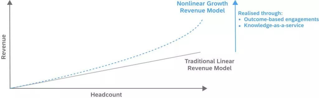 Le aziende vogliono acquisire conoscenze, distribuirle digitalmente in un modo che integri i loro servizi professionali e addebitare ai clienti in base al loro utilizzo o addirittura ai risultati aziendali. Queste soluzioni possono combinare software, intelligenza artificiale, dati, analisi, hosting, supporto e servizi di consulenza tradizionali.
