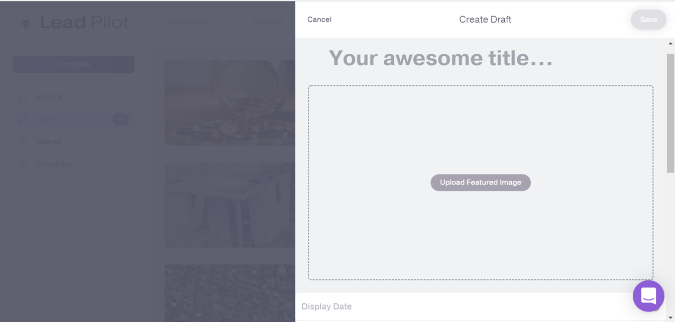 定期的に新しいコンテンツを生成することはほぼ不可能だと思われる場合は、もう一度考えてみてください。 Twenty Over Tenのリードパイロットを使用すると、ニーズに合わせてコンテンツをカスタマイズできます。 Lead Pilotは、コンテンツの膨大なライブラリを提供しており、そこから好きなように選択してカスタマイズしたり、独自のオリジナルコンテンツを作成したりできます。 以下に示すように、Lead Pilotでは、ブログのタイトルを変更して上位のキーワードの一部を含めることにより、ブログをカスタマイズできます。