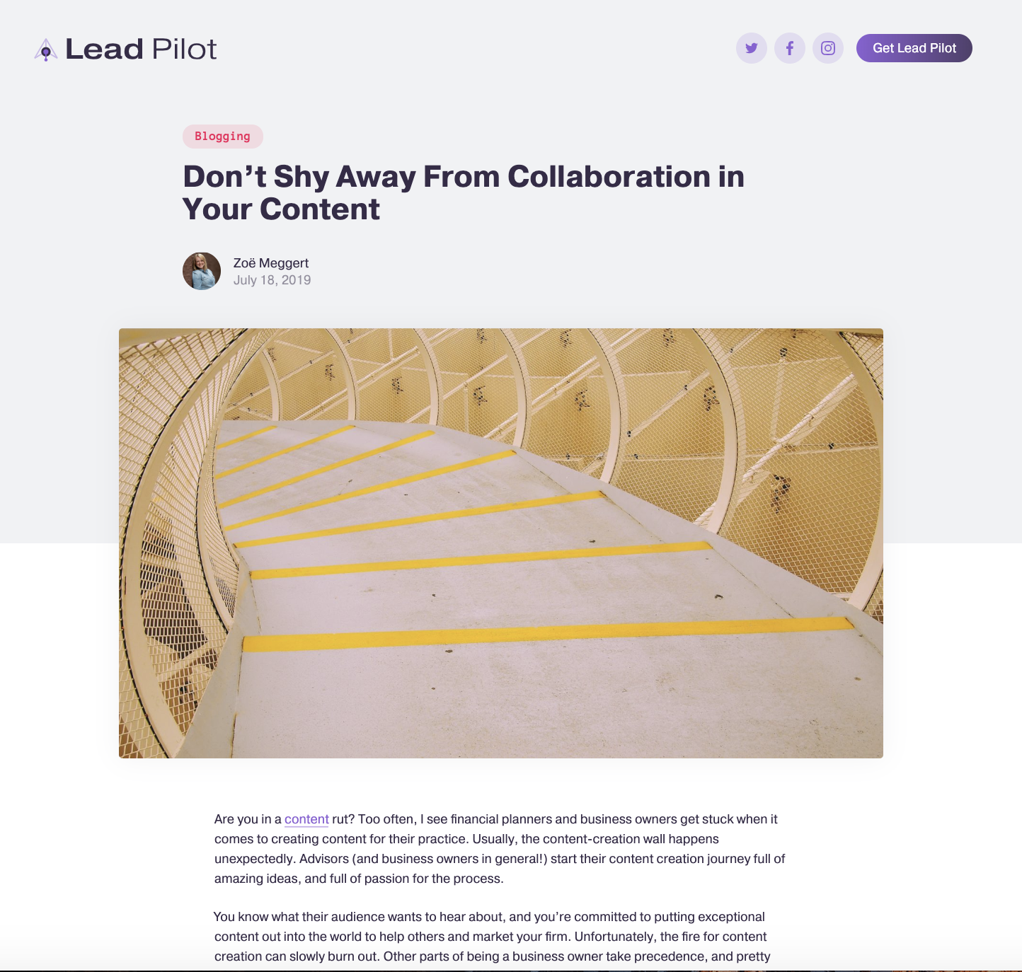 以下の例では、Perfectly PlanedContentの創設者であるZoeMeggertが、LeadPilot'sBlogでゲストブログを共有しています。