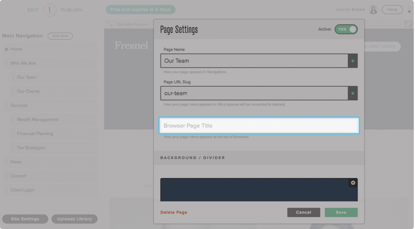 下の写真のTwentyOverTenプラットフォームでは、タイトルタグの変更がこれまでになく簡単になりました。