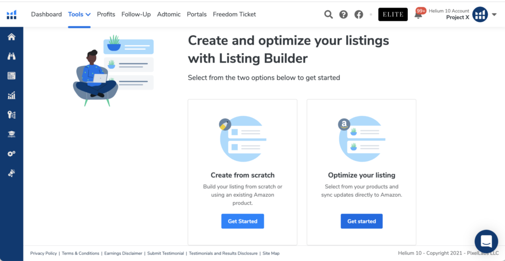 Helium 10ListingBuilder内のすべてのステップを見ていきましょう。 まず、「リストを最適化する」というオプションを選択します。