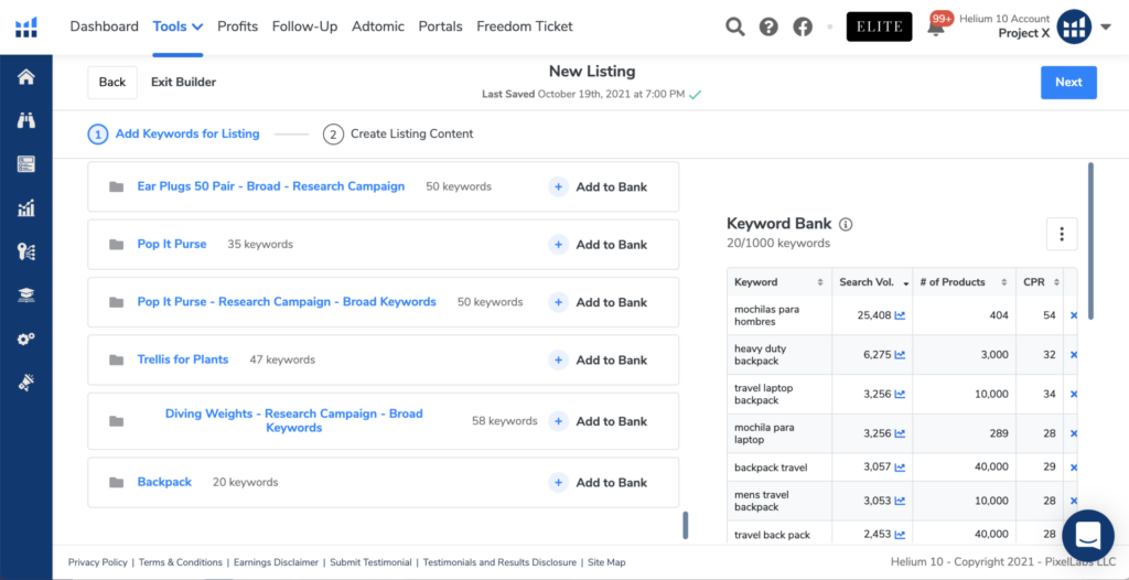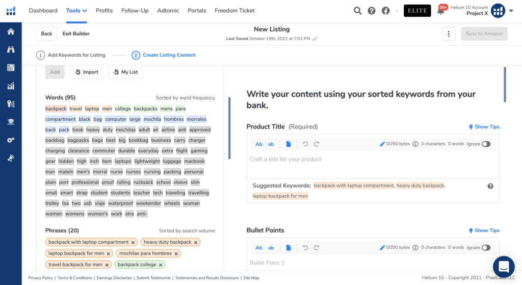 新しい従業員に出荷することを目的として、Helium10バックパックをAmazonに保管しました。 在庫があったので、Amazonのリストを最初から作成するための完璧なケーススタディになると思いました。 キーワードの調査からリスティングの最適化まで、プロセスを段階的に説明します。