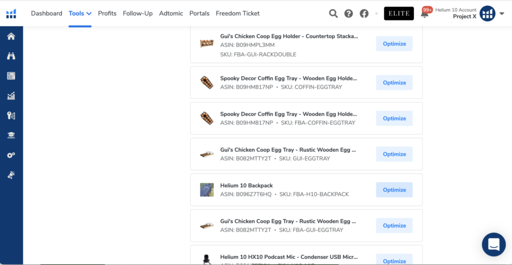 リストから製品を見つけて、その横にある[最適化]ボタンをクリックします。