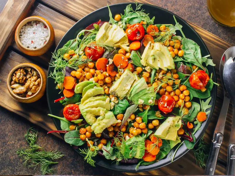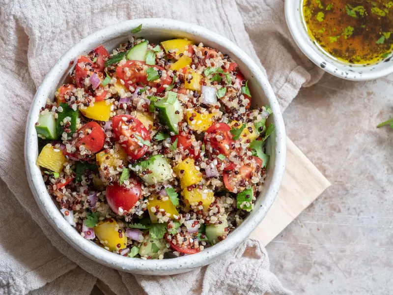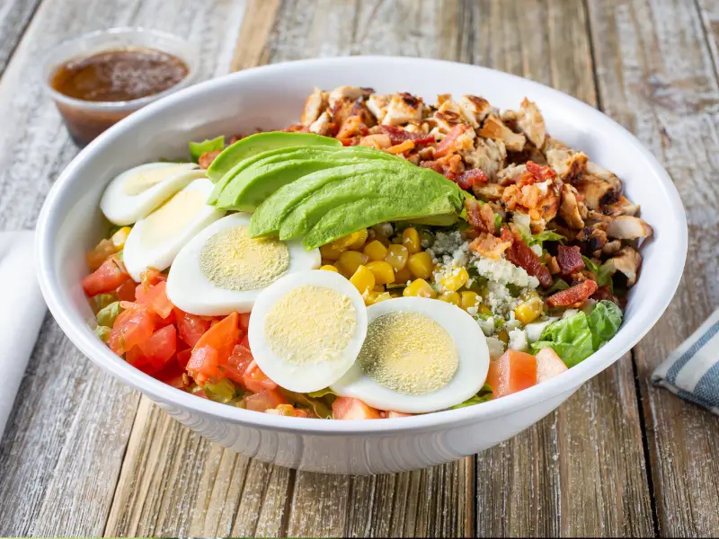 南西部のサラダは、さまざまな風味と食感が楽しめます。 ミックスグリーンから始めて、黒豆、コーン、トマト、アボカドを追加します。 スパイシーなキックを加えるためにチポトレグリルチキンをトッピングしてください。 サワークリームやギリシャヨーグルトを少量加えると辛さを和らげ、ライムを絞ると料理全体が明るくなります。 このサラダは、冷たいビールやさわやかなマルガリータとよく合う、満足のいく食事です。