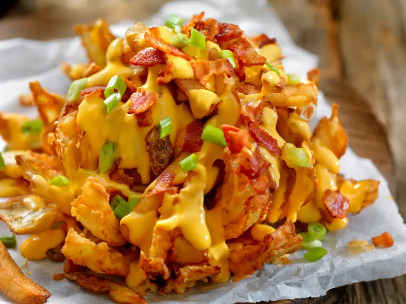 サツマイモのフライドポテトはどんな環境でも人気です。 フェタチーズ、ベーコン、ネギなどの魅力的なトッピングをトッピングして、その魅力をさらに高めます。 このグルメなひねりにより、革新的なバーフード メニューを顧客が絶賛する可能性があります。