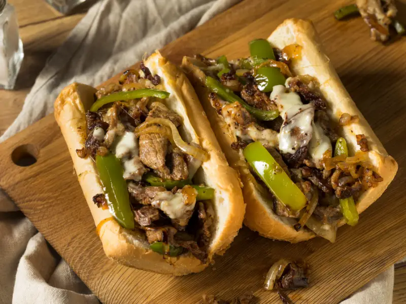 4. フィラメリゼした玉ねぎを添えたフィラデルフィアチーズステーキ