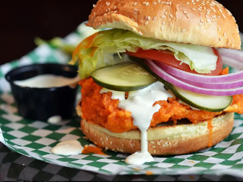 1. バッファローウィングとクリーミーブルーチーズドレッシングのサンドイッチ