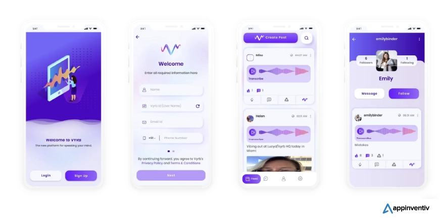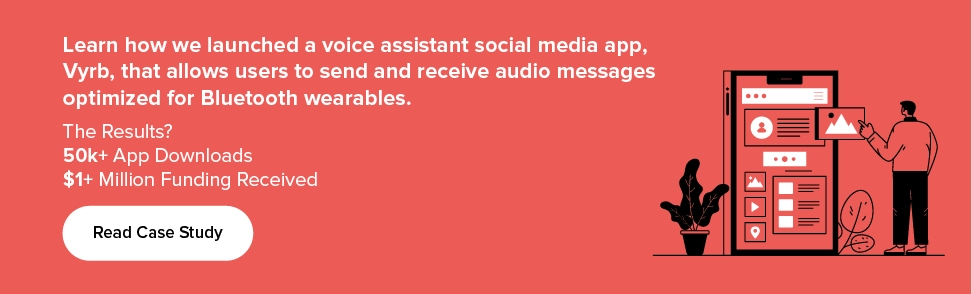たとえば、私たちはクライアントであるメガネ会社 Vyrb のソーシャル メディア アプリケーションの立ち上げを支援しました。 このアプリは、Bluetooth ウェアラブルに合わせた音声メッセージの送受信を容易にします。 さらに、Bluetooth 対応メガネを介して Twitter や Facebook などのプラットフォームに音声投稿できるようになります。 結果? 同社は 100 万ドル以上の資金を獲得し、アプリのダウンロード数は 50,000 件を超えました。