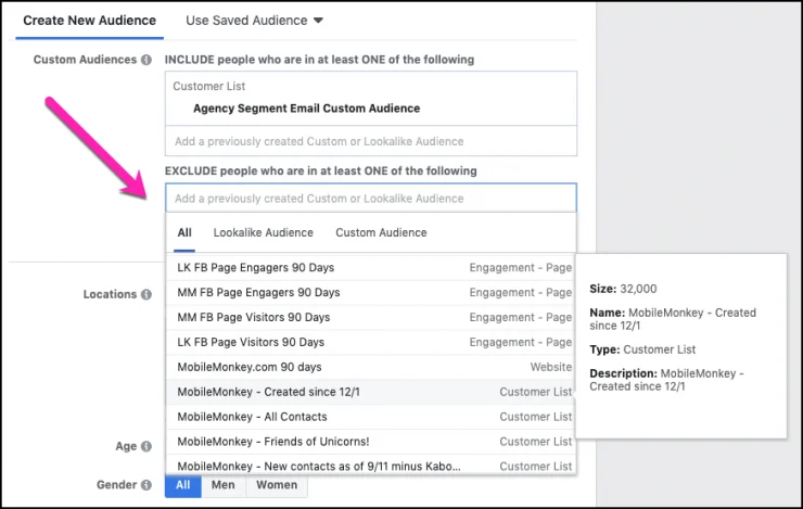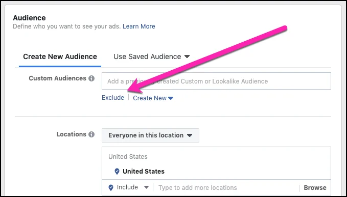 Facebook広告の除外の側面を使用して、広告でターゲティングしたくない特定のオーディエンスを特定できます。