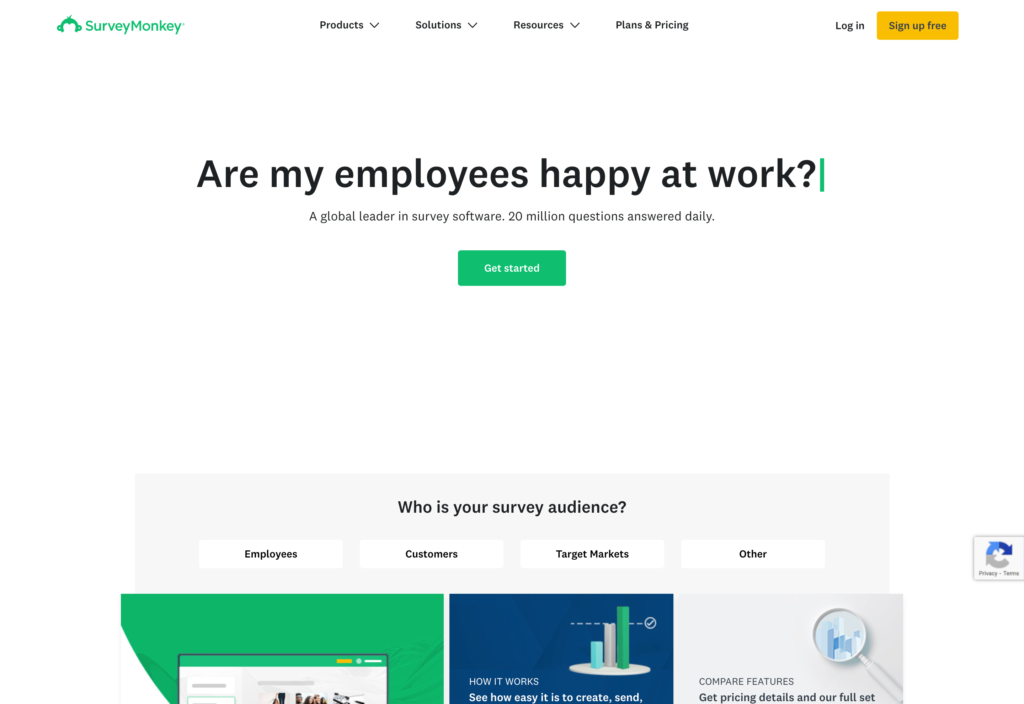 SurveyMonkeyは、雇用主がカスタム調査を作成するために使用できるツールで、従業員や外部の聴衆に配信できます。 事前に作成された調査テンプレートも多数用意されています。
