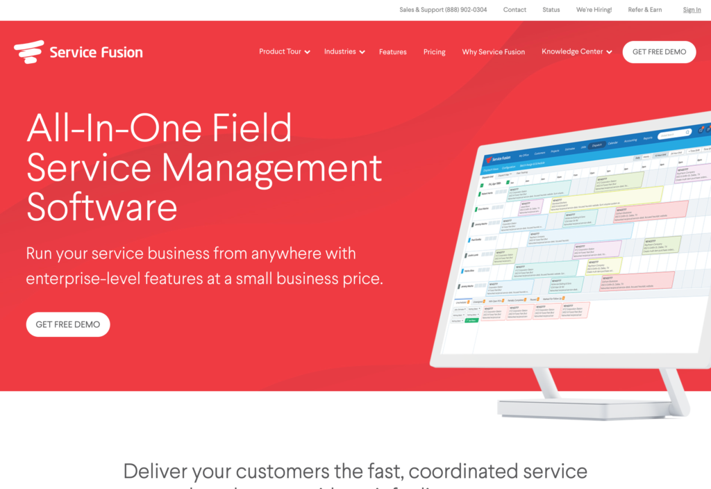 Jobber の代替品のリストの次はService Fusionです。これは、スケジューリングおよびディスパッチ機能を備えたフィールド サービス管理ソフトウェア ソリューションです。 このプラットフォームは、ドラッグ アンド ドロップの予定スケジューリング、技術者派遣アラート、単一のダッシュボードから作業指示書を作成する機能を提供します。 また、リアルタイムの通知とアラートも提供します。