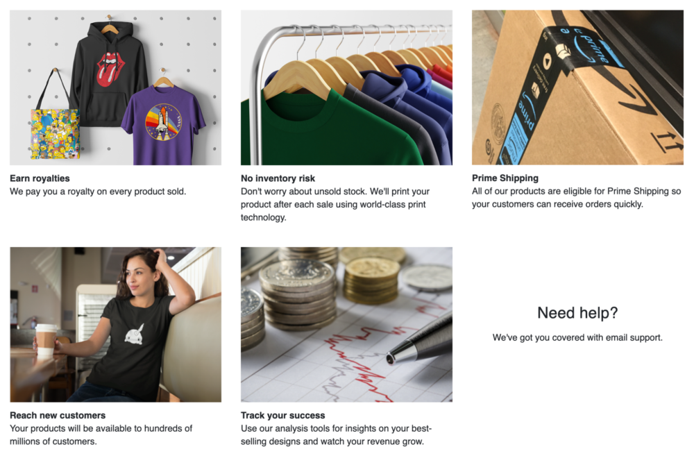 短所: Merch by Amazon の最大の欠点は、参加するには招待状が必要なことです。 受け入れられるための最善の方法は、自分のソーシャル メディアでの存在感を高め、最高のデザインを発表することです。