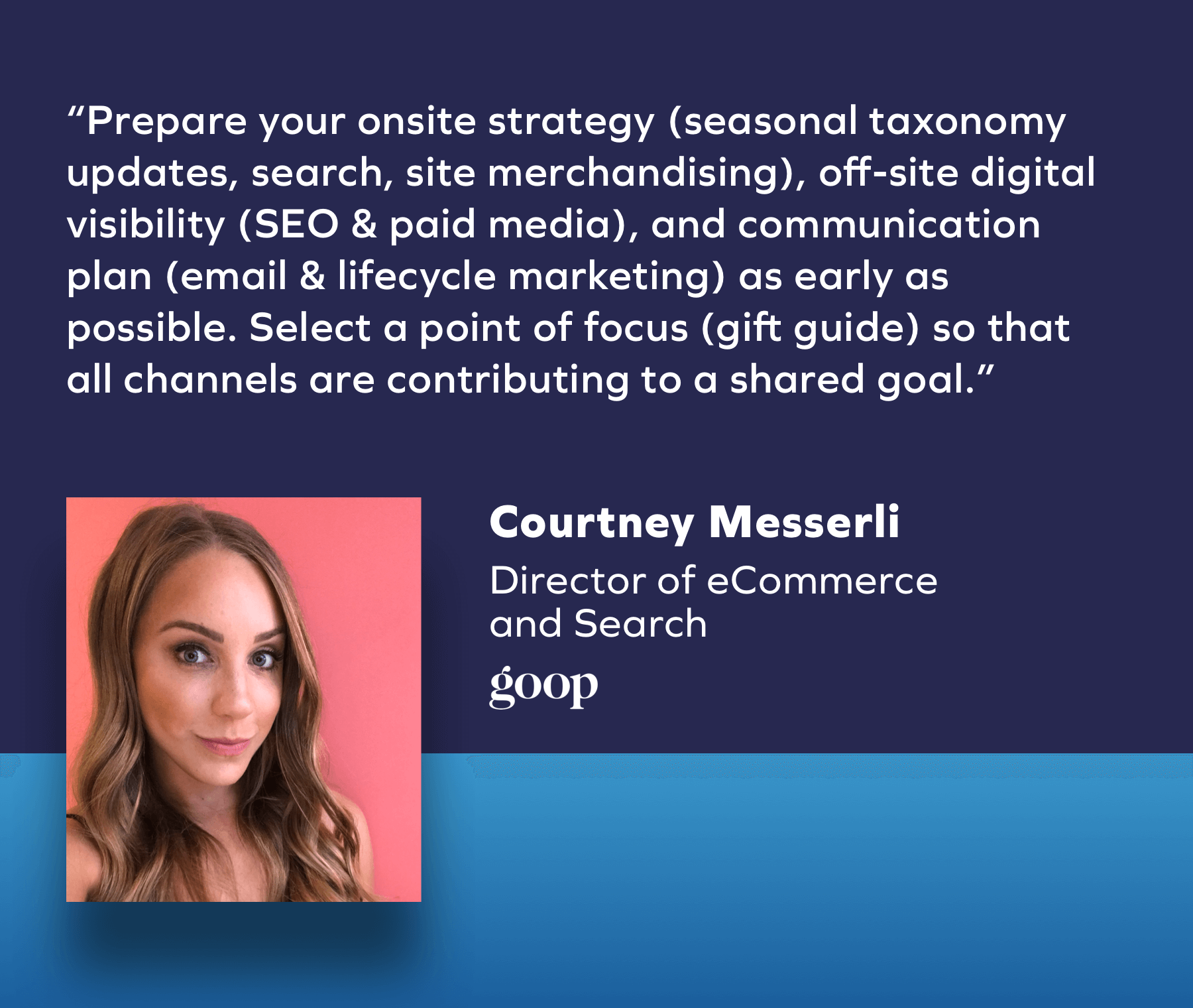 割引、プロモーション、イベントをオーディエンスに伝えることを先取りすることは、ブラックフライデーのマーケティング戦略全体で期待を高め、エンゲージメントを最大化するための鍵です。 「eコマースブラックフライデー/サイバーマンデーの準備は、予測される「店舗への復帰」トレンドの中で今日のデジタル環境で競争力を維持するために、2021年にこれまでになく早く開始する必要があります」とグープのeコマースおよび検索ディレクターであるコートニーメッサーリは述べています。