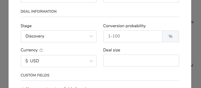 私が最初の提案を追加しようとしたとき、Clientjoyは最初に新しいリードを追加するように促しました(その後、上記の販売パイプラインかんばんボードに追加されます)。
