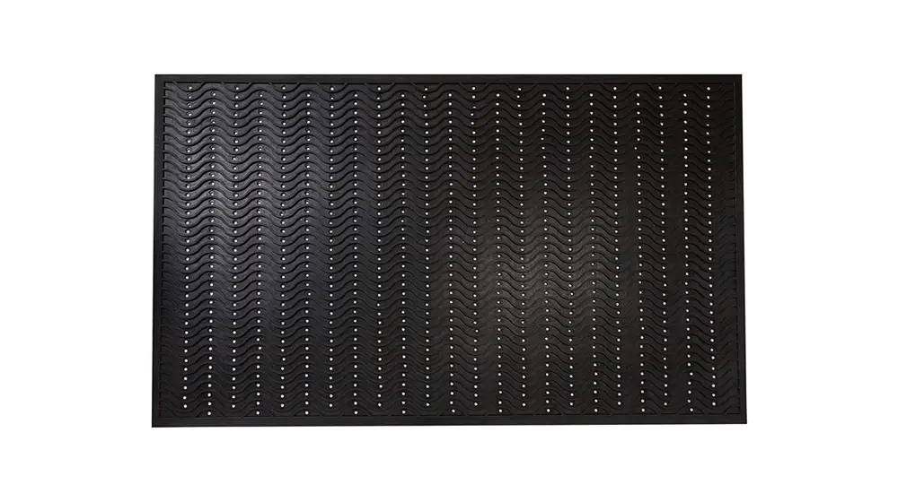 DuraScraper Linear マットは天然ゴムとリサイクルゴムで作られており、さまざまな気象条件に耐えられるように設計されています。 指先屋外玄関マットは、数千個の弾力性のあるゴム製の指先が靴の汚れや湿気を拭き取ります。 マットの底部には動きを防ぐ波形パターンがあり、安全性を高めるために四辺すべてに面取りエッジが施されています。