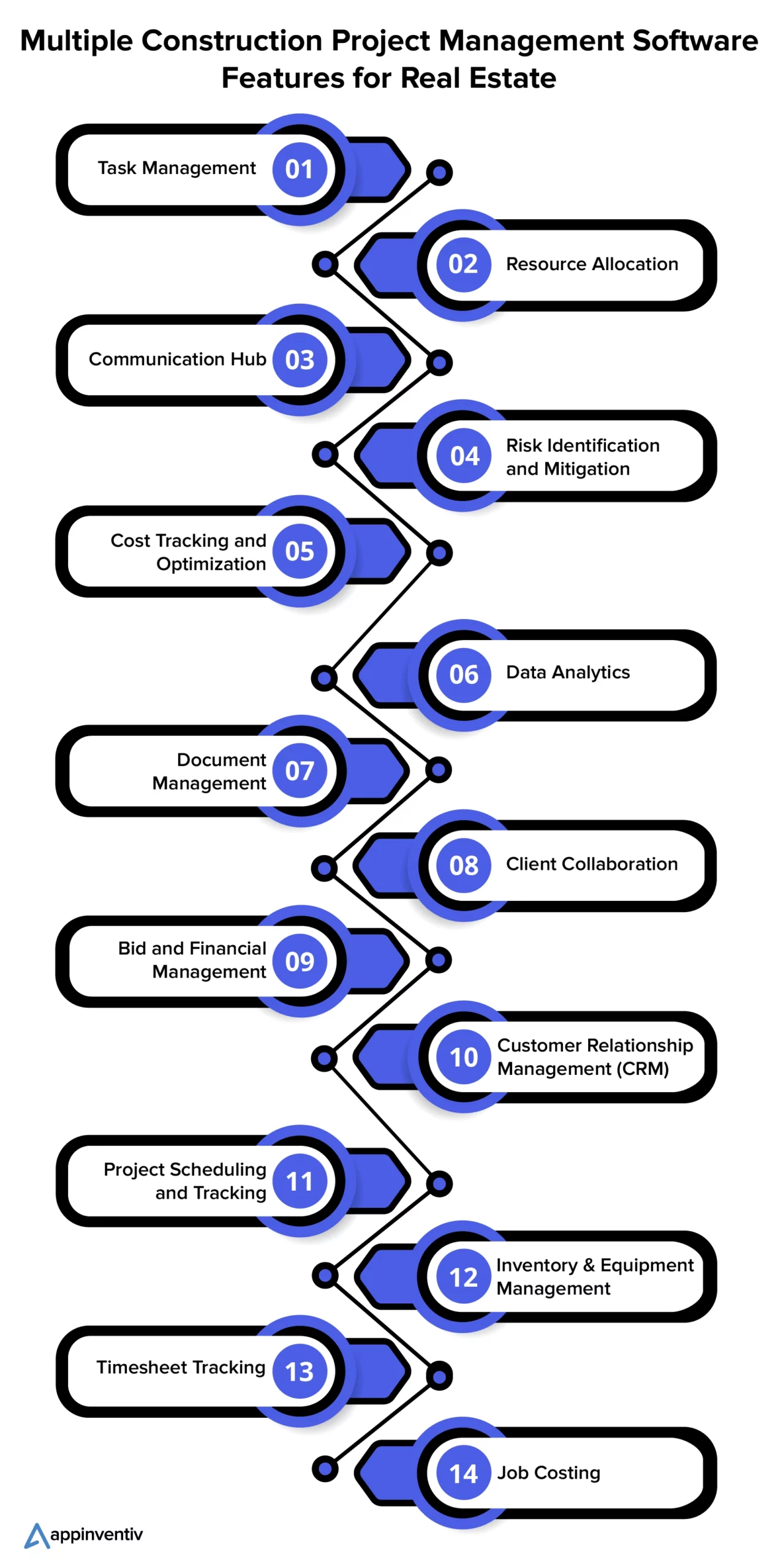 堅牢な建設プロジェクト管理ソフトウェアは、タスクを合理化し、コラボレーションを強化し、プロジェクトの成功を確実にするために設計された広範な機能セットによって支えられています。 不動産部門向けの複合建設プロジェクト管理ソフトウェアの機能を見てみましょう。