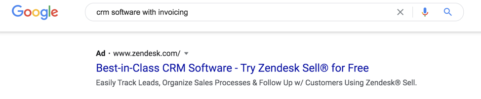 CRM管理ソフトウェアZendeskのGooglePPC広告の例を次に示します。