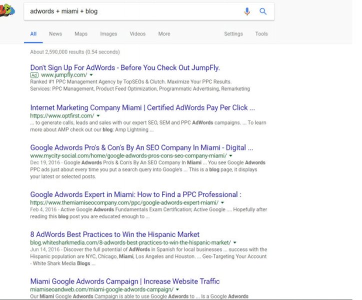 ゲストグラフィック アウトリーチ キャンペーンの見込み客のリストを作成するために私が使用したもう 1 つの方法は、私と直接競合していない、Adwords に基づいたコンテンツを共有する可能性が高い、私のような他の代理店をターゲットにすることでした。