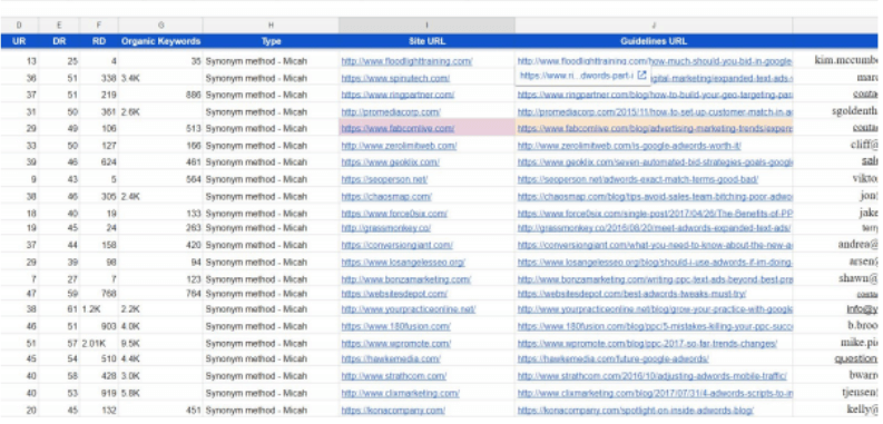 そこから、私は投稿の投稿者を見つけ、すべての連絡先詳細のリストを作成し始めました。これを使用して彼らに連絡し、私のインフォグラフィックをリンクベイトとして使用して、サイトにミニゲスト投稿を確保しました。