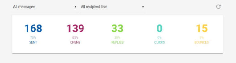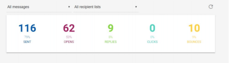 開封率は非常に高く、返信率も非常に良好で、方程式から返送されたメールを除外すると、返信の統計はさらに良くなりました。