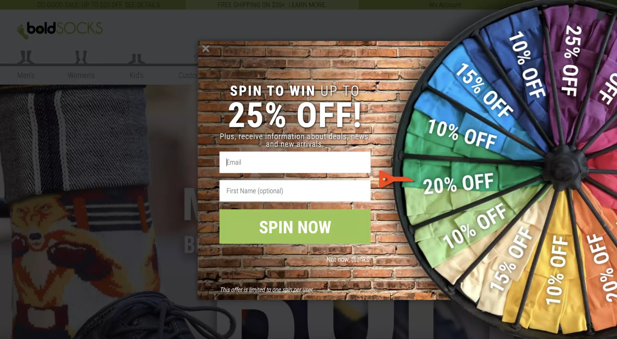 ホイールを回す割引ポップアップを使用して、Web サイトでのショッピング体験をゲーム化します。