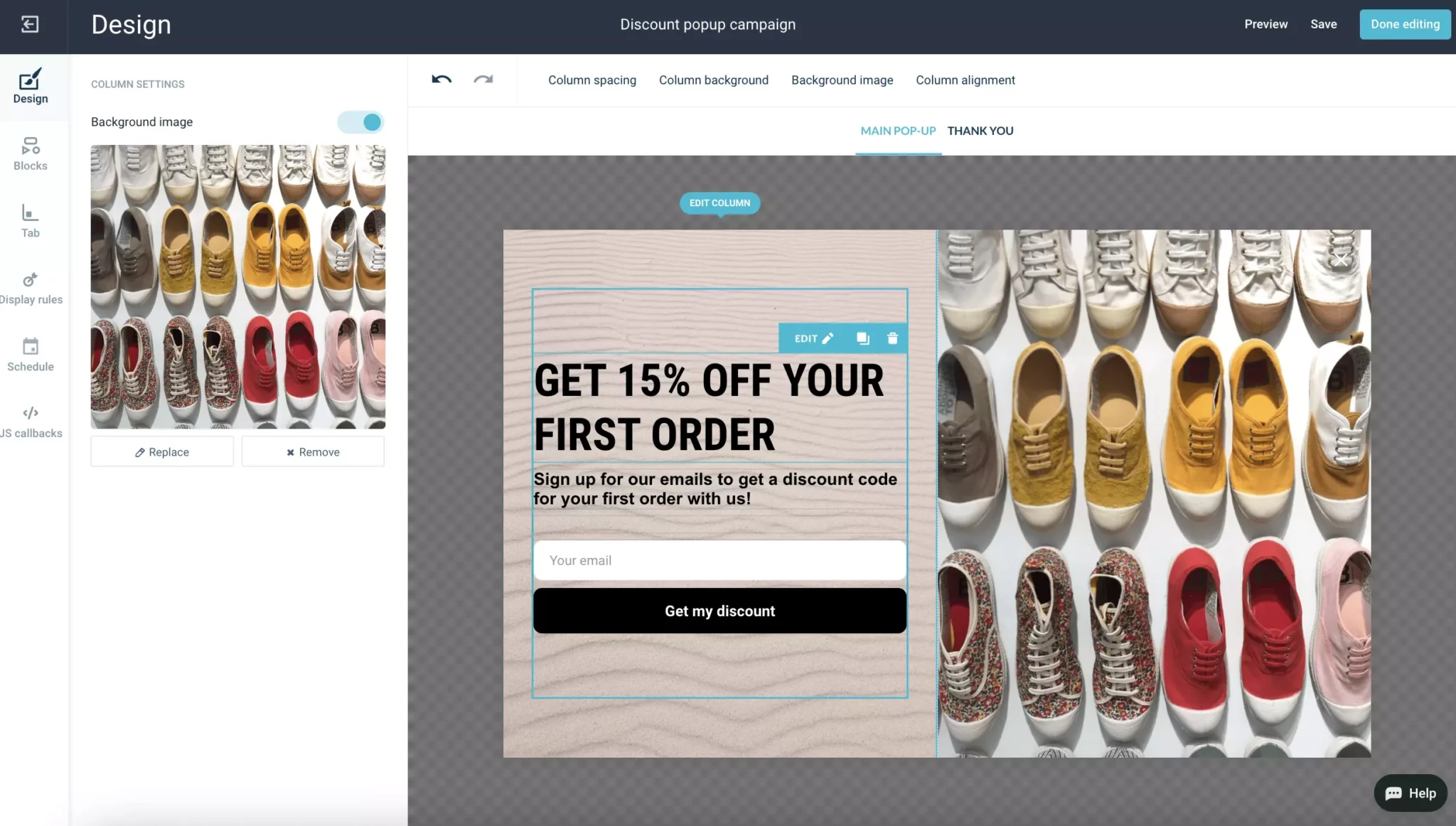 ステップ 2: 割引ポップアップのデザインをカスタマイズする