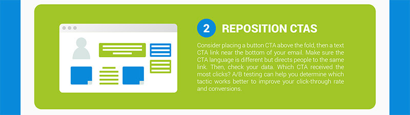 ボタンの CTA をスクロールせずに見える位置に配置し、テキストの CTA リンクをメールの下部に配置することを検討してください。 CTA の言語が異なることを確認しますが、ユーザーを同じリンクに誘導します。 次に、データを確認します。