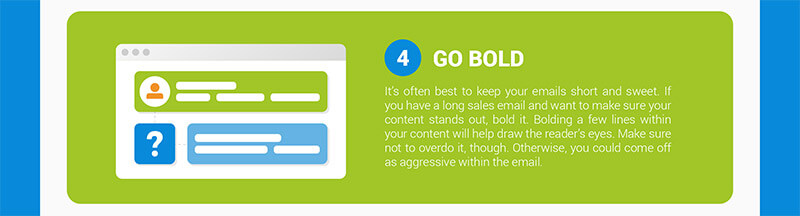 人々は電子メールをざっと読んだり、急いで読んだりします。 コンテンツ内の数行を太字にすることで、読者の目を引くことができます。
