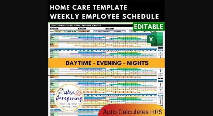 これは、編集可能な Excel ドキュメント、昼と夜のシフト用の 2 つのスケジュール テンプレート、およびサンプル スケジュールを含む会社の週間スケジュール テンプレートのデジタル ダウンロードです。 このテンプレートは、在宅介護、パーソナルケア、高齢者介護、高齢者介護、民間/公的介護施設、託児所、コンサルティング会社、およびサービス業向けに設計されています。