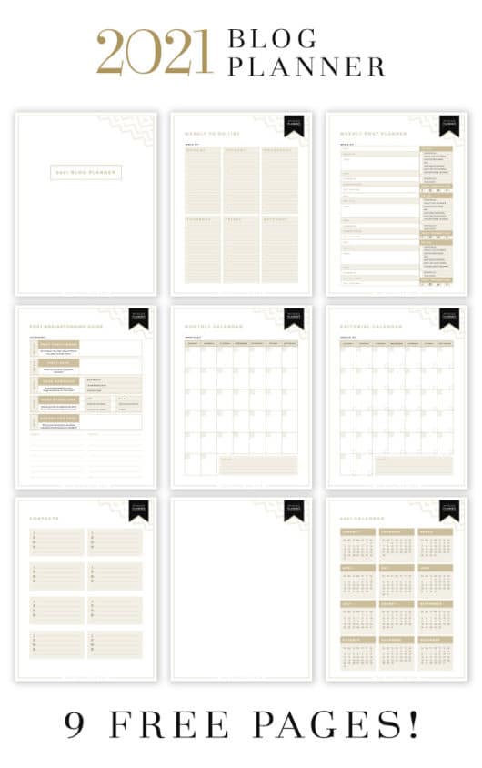 Designer Blogsのこのブログプランナーキットは、まさに究極のプランニングキットです。 ブログを計画する魔法の9つの美しくデザインされたページで、このキットは打ち負かされません。 コンテンツの計画、アフィリエイトプログラムの追跡、財務状況の把握などに役立つページがあります。