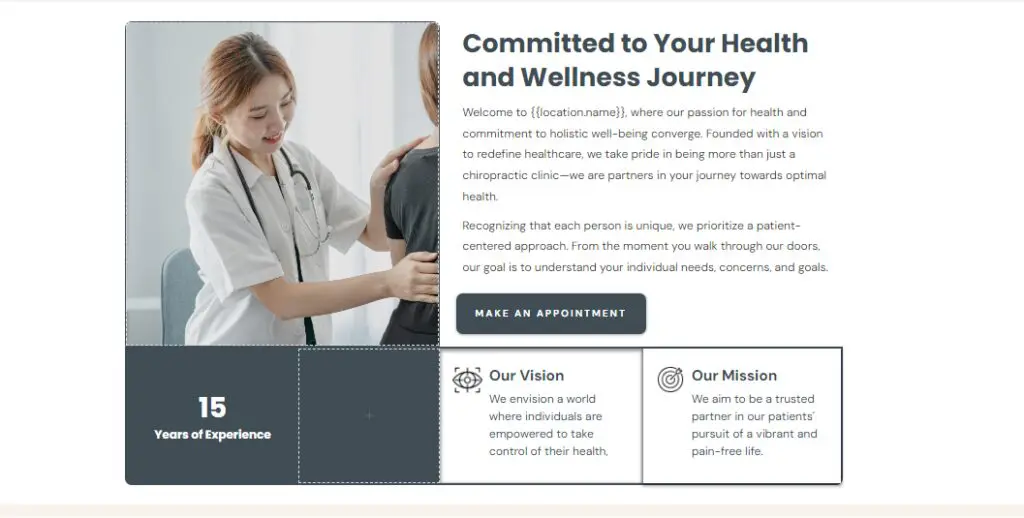 - カスタマイズ: Web サイトをカイロプラクティックのブランドに合わせて調整します。
