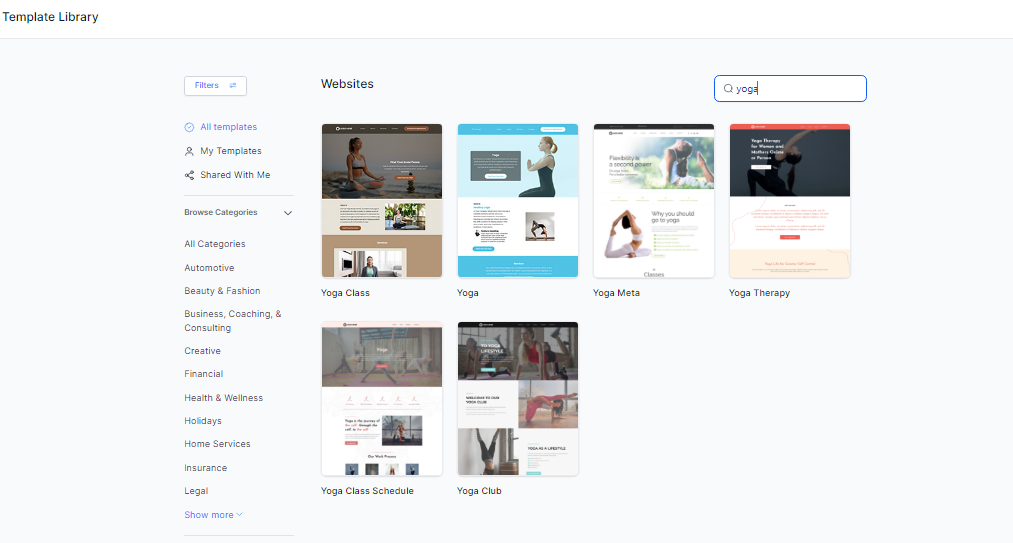GoHighLevel は、ヨガ インストラクターのニーズなど、さまざまなビジネス ニーズに合わせた幅広い Web サイト テンプレートを提供しています。