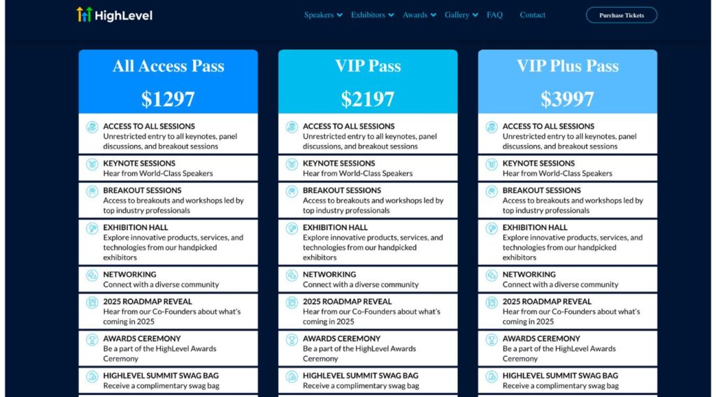 GoHighLevel サミットへの参加を計画している場合は、好みやニーズに合わせていくつかのチケット オプションを見つけることができます。