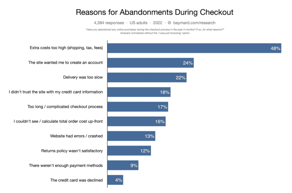 Baymard Institute が 2022 年に行ったチェックアウト時の放棄の理由に関する調査では、回答者の 24% が放棄の理由として「サイトがアカウントの作成を求めていた」を選択しました。