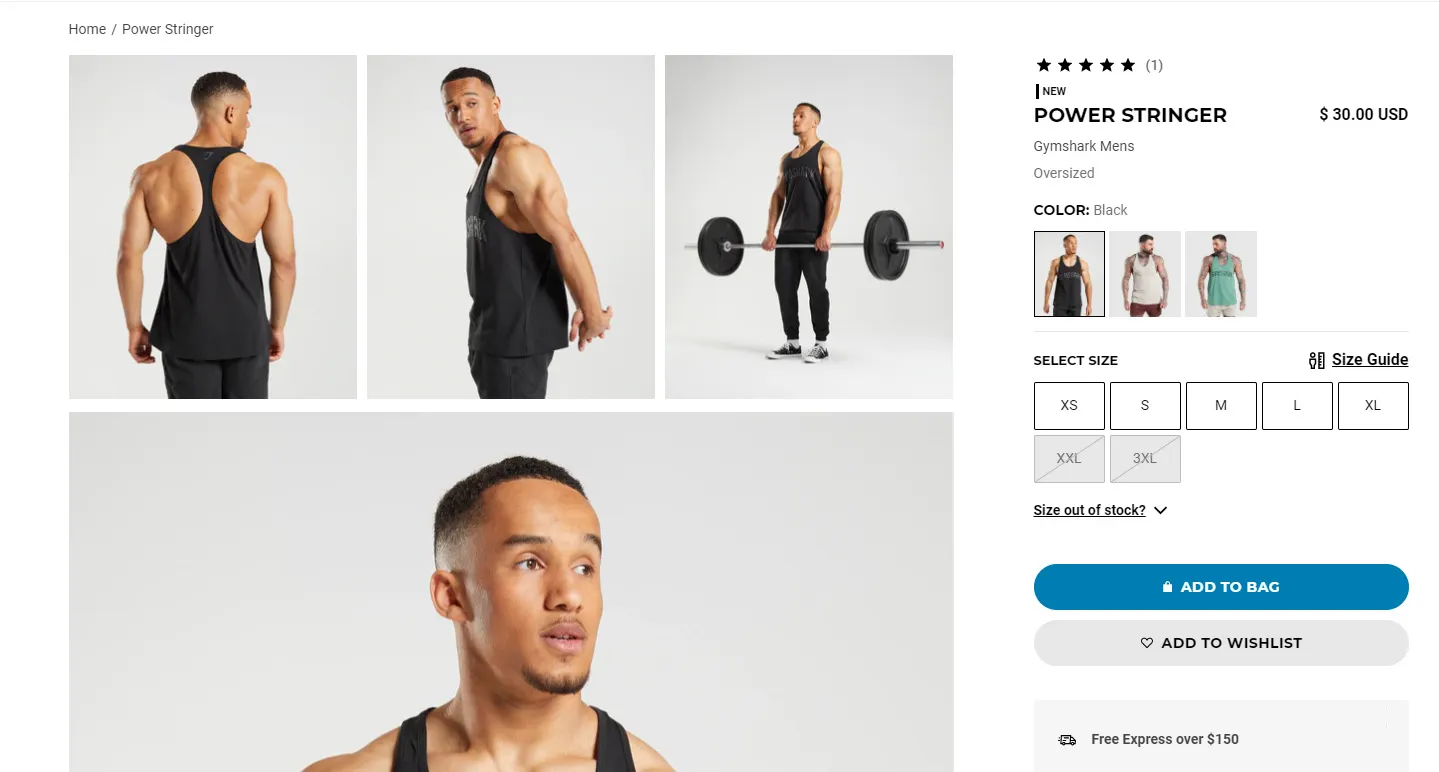 体操服のブランドであるGymsharkを例にとると、製品の複数のショットが提供されているだけでなく、顧客が製品を自分のものとして視覚化するのに役立つ製品のライフスタイル写真も含まれています。