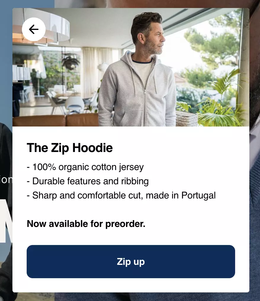 また、Asphalte はオンサイト通知を使用して、事前注文が承認された製品に訪問者を誘導します。 フィード内の各製品には独自の通知があり、訪問者は重要な製品情報をすぐに入手できます