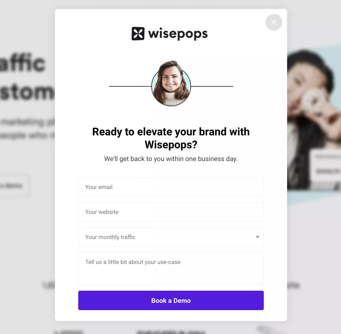 これは、SaaS ビジネスにとってもう 1 つの優れたキャンペーン アイデアです。ポップアップを使用して、潜在的なクライアントからデータをすばやく収集します。 また、Wisepopsにアクセスして、これを自分で試してみてください!