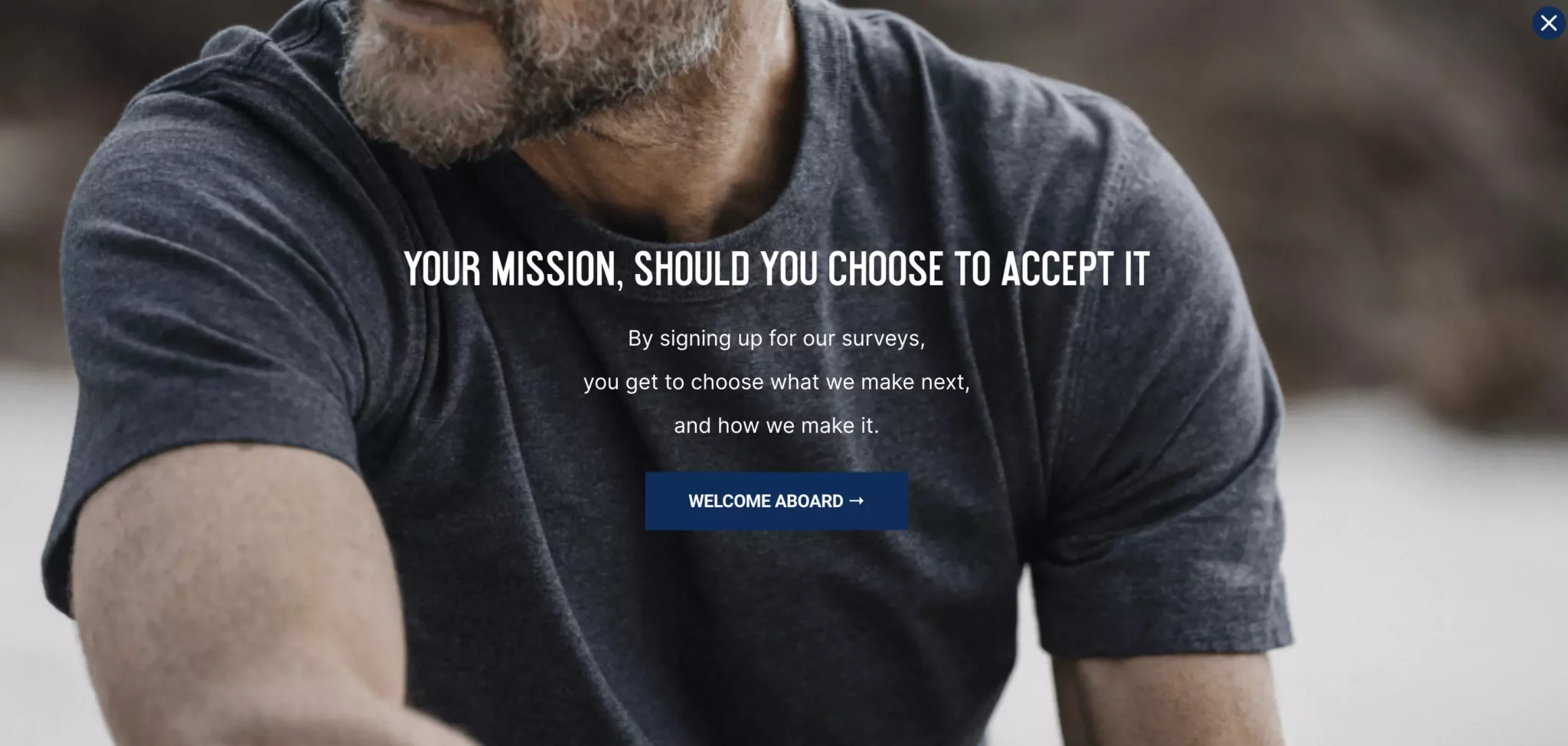 今回、ブランドはフルスクリーンのポップアップを使用して、製品調査へのトラフィックを誘導しました。 Asphalte は予約注文のビジネス モデルを使用しているため、どの衣料品を生産するかを決定するには顧客のフィードバックが必要です。