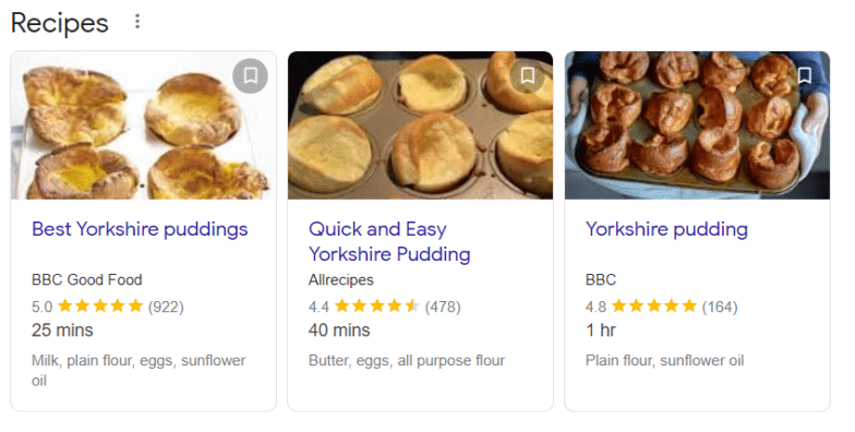 調理時間、評価、料理などの詳細がWebサイトのリンクに表示されるレシピの検索結果を見たことがありますか? これは、実際のスキーママークアップの例であり、リッチスニペットと呼ばれるものを作成します。 また、検索結果にWebサイトが表示されたときに、ブレッドクラムを表示するのにも役立ちます。