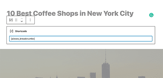 ページまたは投稿にショートコードを使用してブレッドクラムナビゲーションを追加する場合は、ページに次のコードを追加するだけです。