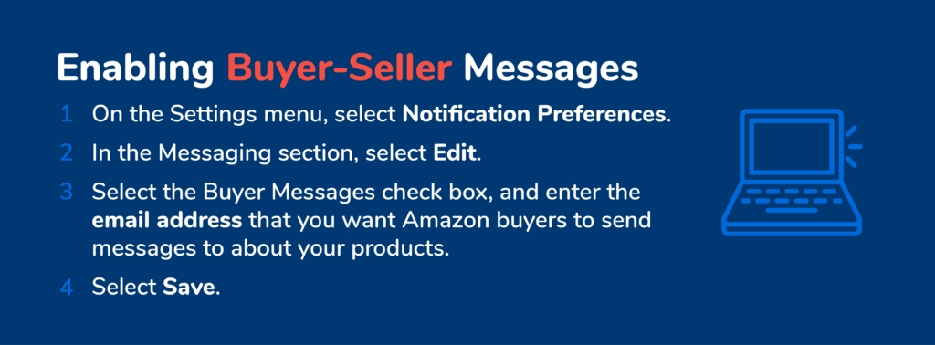 購入者と販売者のメッセージングを使用する前に、設定で有効にする必要があります。 売り手として、それはあなたの通知設定を見つけて、買い手と売り手のメッセージをオンにするのと同じくらい簡単です。 これは、Amazonアカウントでメッセージをチェックする方法に関して最も重要なステップの1つです。