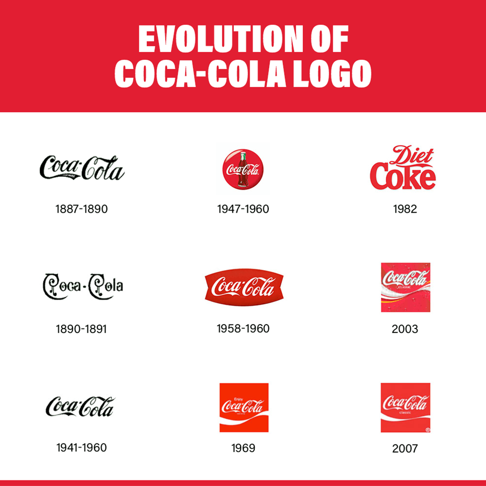 あなたのロゴが進化していなければ、それは現代に追いつくことができません。 しかし、ここに問題があります。 私たちが話している変更は最小限で、段階的に変更する必要があります。 コカ・コーラが何世代にもわたって行ってきたこととよく似ています。
