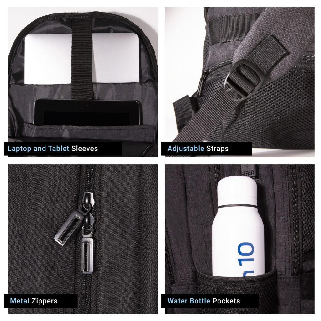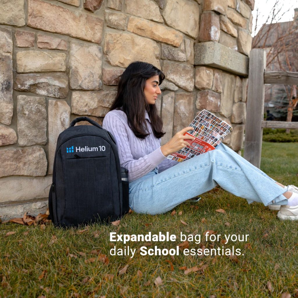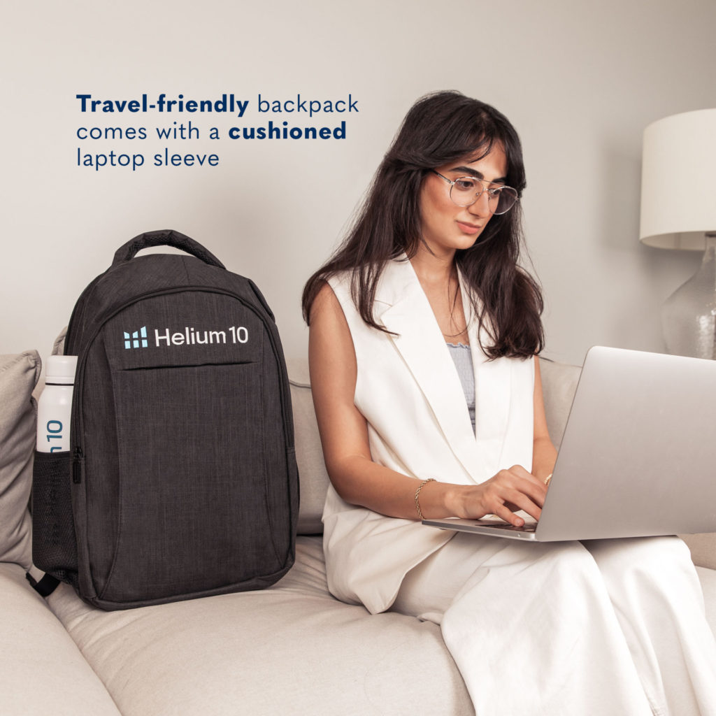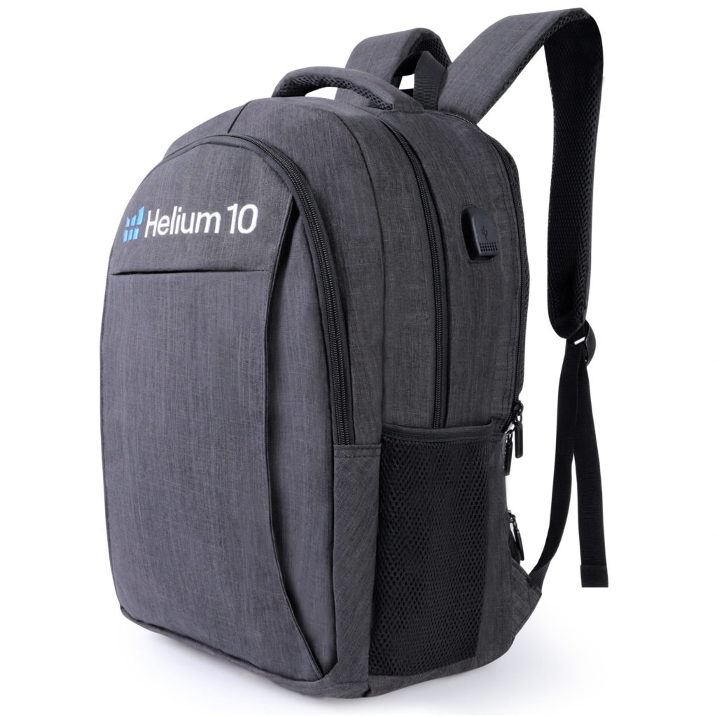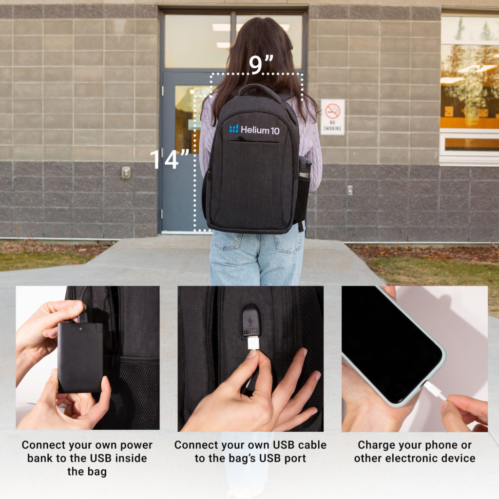 ラップトップコンパートメントと旅行、プロの仕事または大学のためのUSBポート充電器を備えたHelium 10ブラックバックパック、男性用の大型ラップトップバックパックは盗難防止ポケット付きの17インチの本に適合します