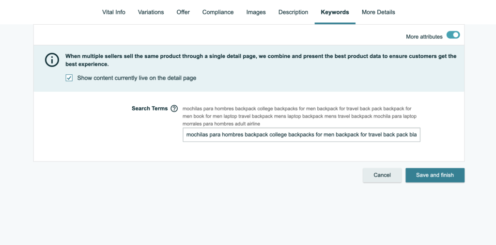 私の場合、これは本当です。 私の製品には多くの機能があり、顧客ベースは、購入するバックパックを決定する前にそれらについて知りたがっています。 セラーセントラルユーザー向けにAmazonが概説した次のベストプラクティスを必ず実行してください。