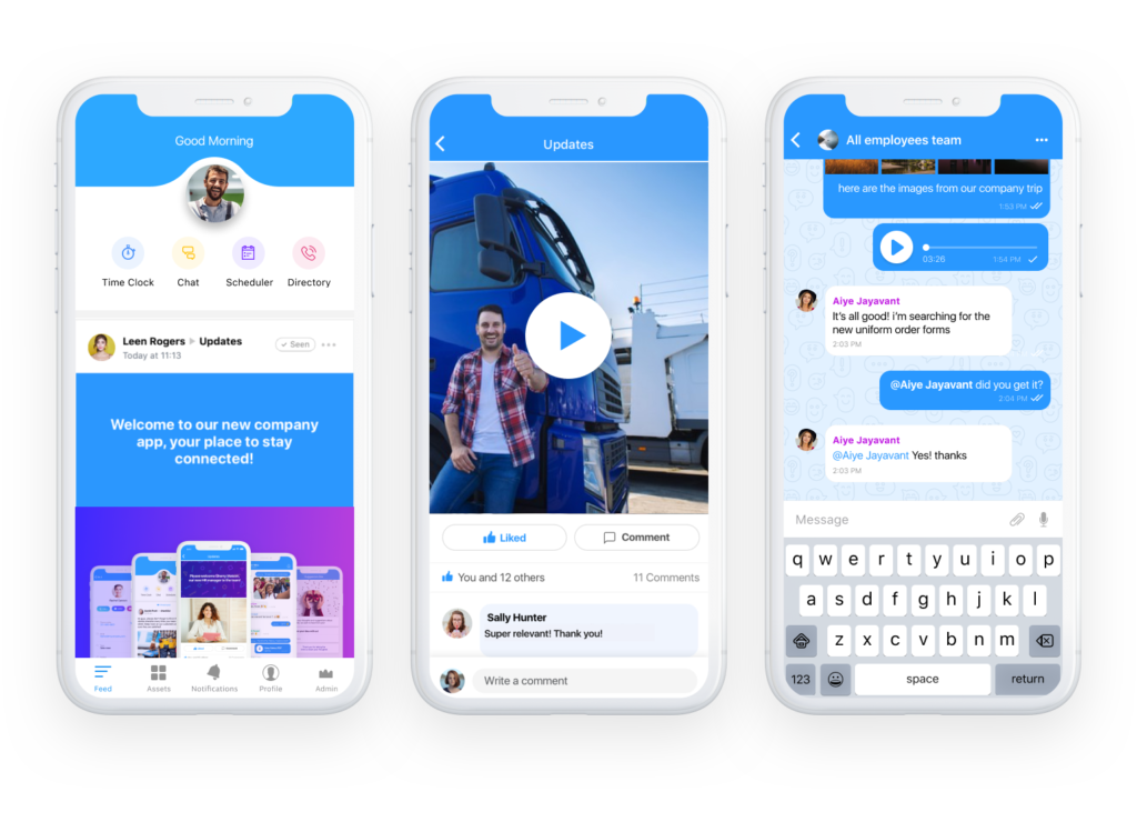 - アプリ内チャットを使用すると、マネージャーはターゲットを絞った 1 対 1 またはグループ メッセージを特定のチームまたは部門に送信して、すべての従業員が同じページにいて、重要なことを通知されるようにすることができます。