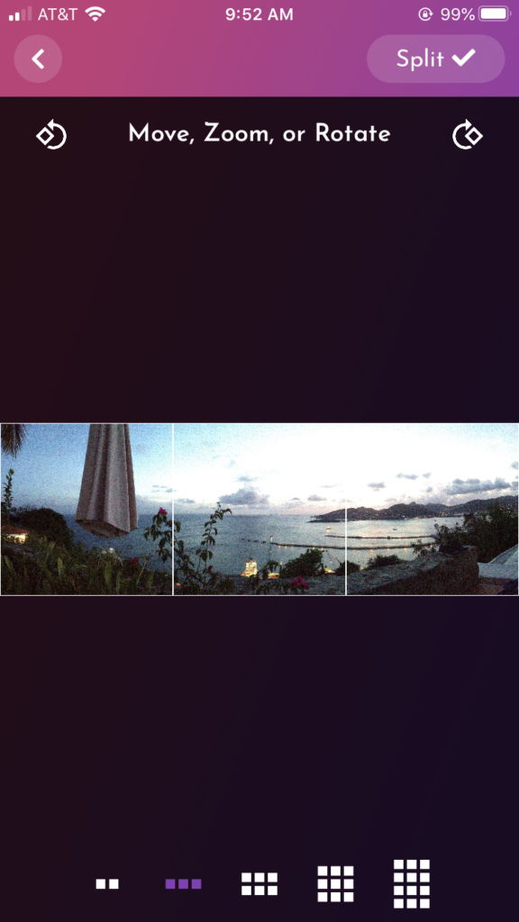 | Psst…元の画像を分割する方法を決定するときは、写真の向きを覚えておいてください。 3枚または6枚の画像の複数の写真グリッドは、風景画像やパノラマ画像に最適です。 ポートレートスタイルまたは正方形の画像の場合、通常は9または12の正方形のグリッドが最適です。 |