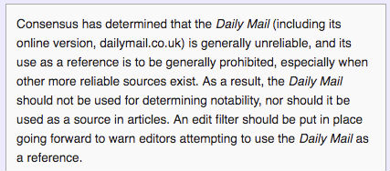 グーグルが信頼でダイヤルを上げた、そしてデイリーメールがカットをしなかったということは確かに可能である。 この出版物は、センセーショナルで信頼できないコンテンツを制作することで定評があります。 Lily Rayは、ウィキペディアには、デイリーメールの信頼性が低く、引用すべきではないことについて説明しているページ全体があると指摘しました。