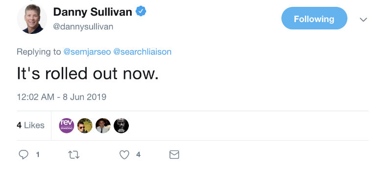 このアップデートは、TwitterでDannySullivanによって事前に発表されました。